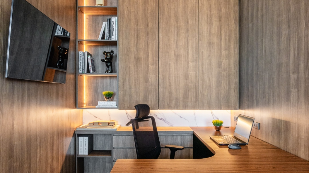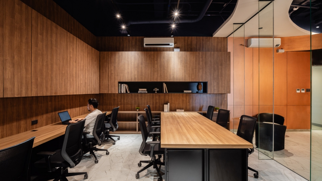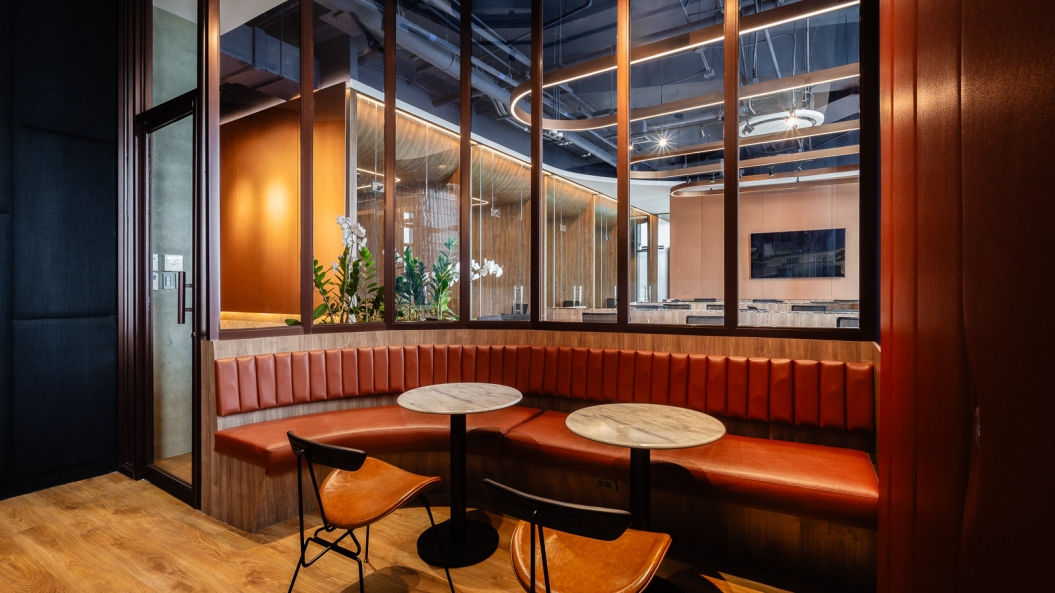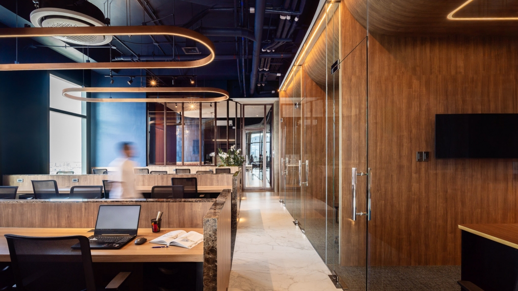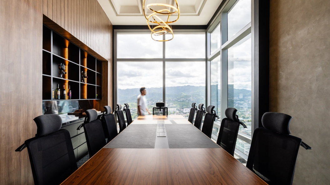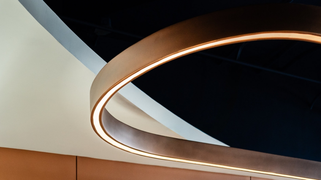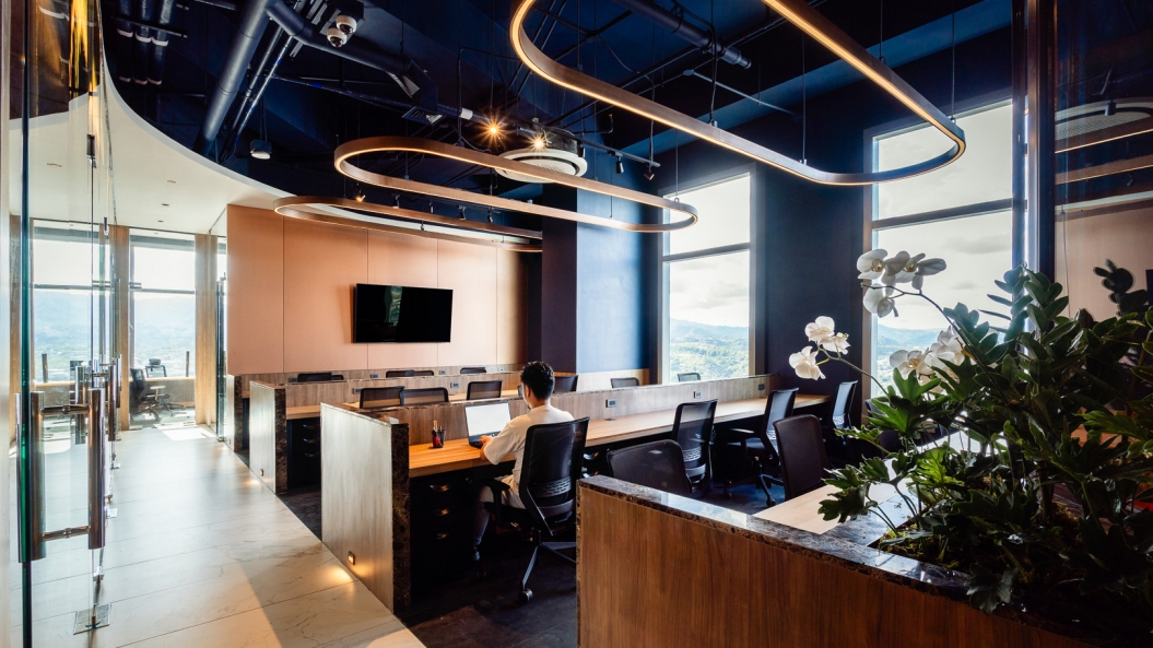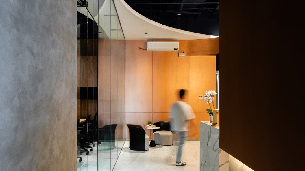 Copper-painted metal sheets wrap around the office walls to express the company’s prestige and elevate the office’s user experience. These metal sheets were lined with a perforated pattern to denote movement which is consistent with the company’s nature of business. This, along with the use of curves, soften the overall design to create leading lines that help in way finding. All these features encapsulate a design that we hope will propel the company through the next 25 years.