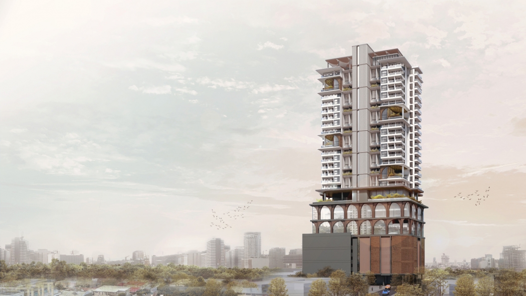 Defining the pocket gardens and residential units so that they could be instantly recognizable from afar is crucial in the facade’s design evolution. The incorporation of perforated metal sheet arches not only adds character to the building but also mitigates effects of solar heat gain within the residential modules. Curvilinear elements are intentionally employed in key locations for a more architecturally cohesive look.