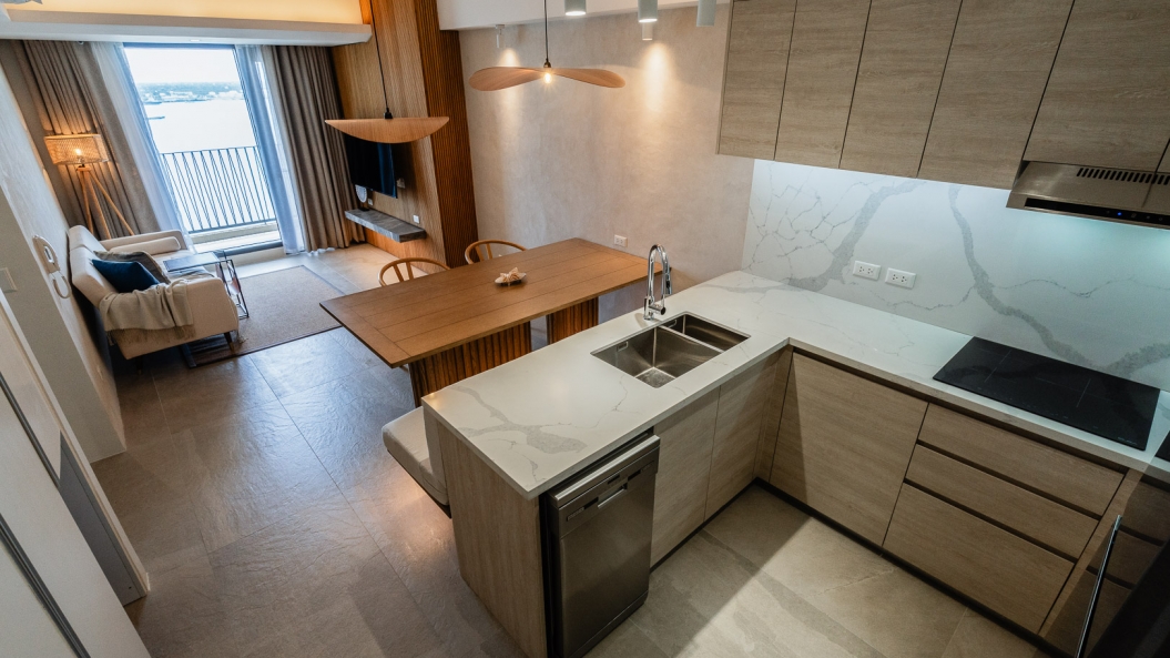 Clean, bright, and coastal. These three qualities sum up the essence of this ninety square meter condo unit perched along the water’s edge of Cebu’s biggest cities. Envisioned to be a home for high-performing professionals, expats, or a modern family, the client commissioned for a space that was high-end and within their budget.