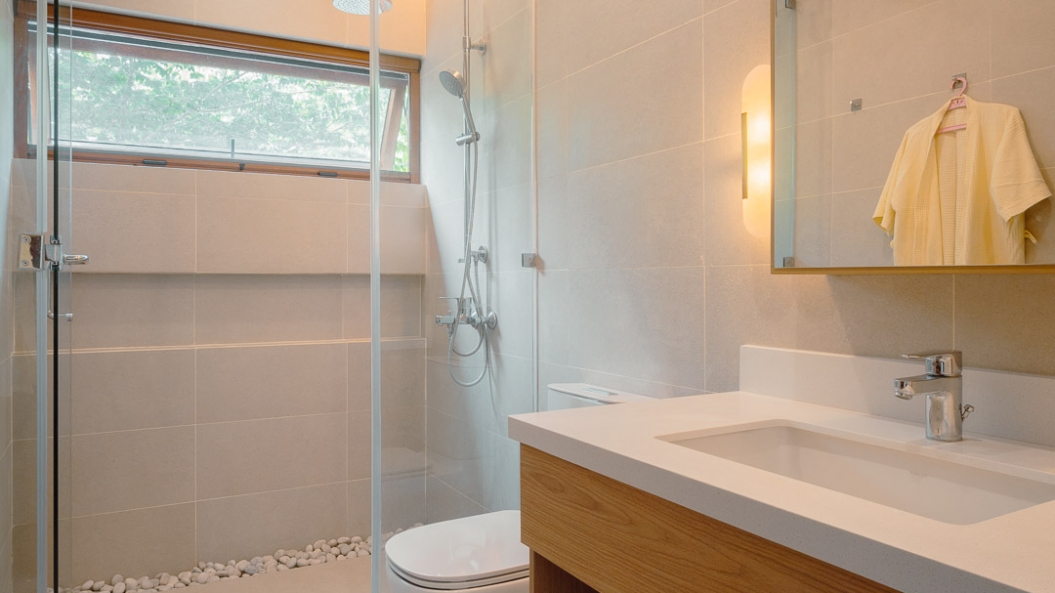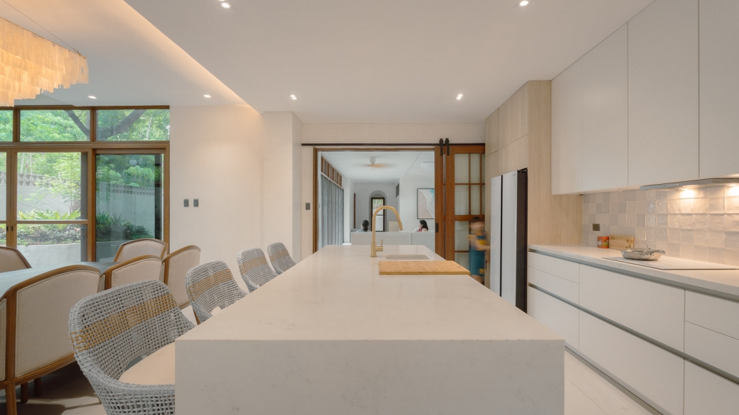 The client’s admiration for the light, breezy & vernacular nature of Balinese architecture was the primary inspiration for the design of this residence. The simple yet balanced composition of volumes and bold architectural lines allow the materials to take center stage; an ever-present feature in Balinese vernacular architecture.