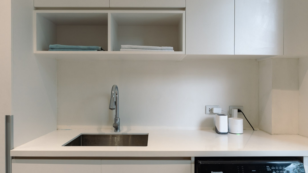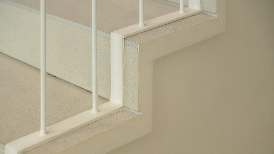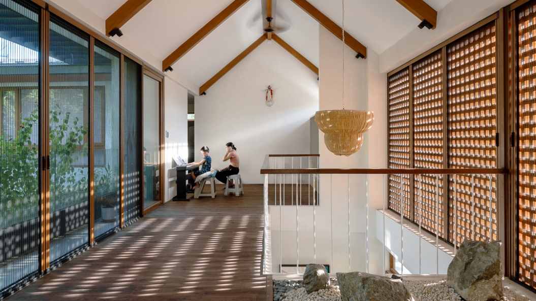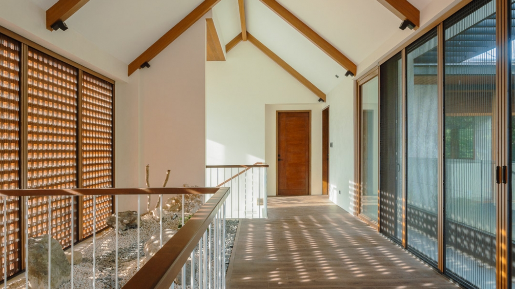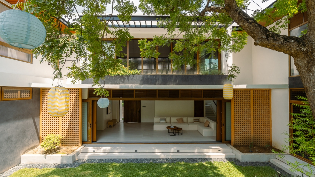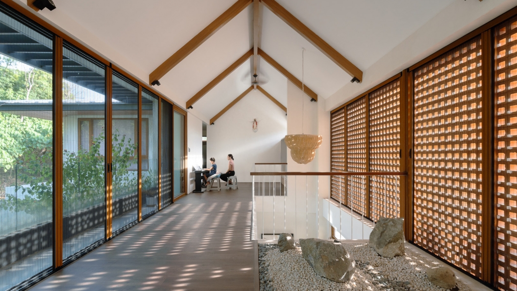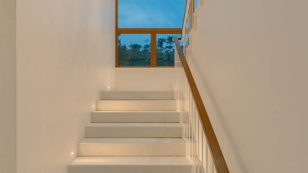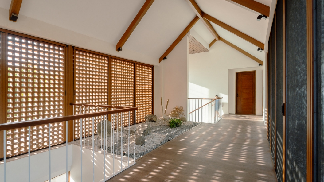 Breeze blocks on the second floor immediately capture one’s attention, becoming the clear focal point of the exterior facade while adding some much-needed texture to the subdued palette. These breeze blocks also allow air to permeate throughout the home creating a gentle breeze during certain times of the day and act as the perfect complementary feature to the home’s open floor plan.