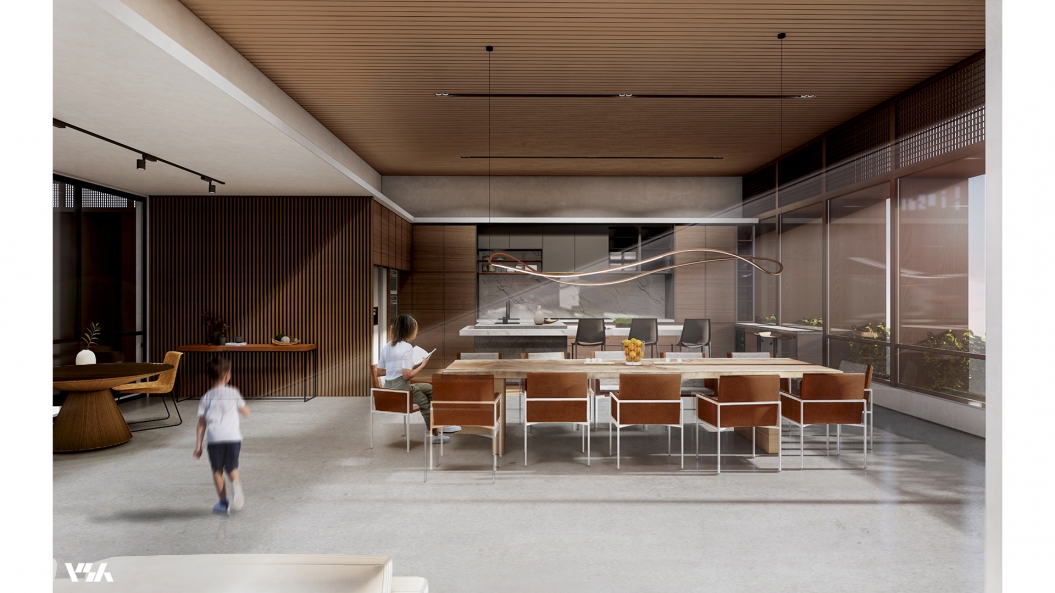 Sporting a four-car garage, two interior courtyards, oversized bedrooms, as well as various lounge and entertainment areas, this four-storey residence takes the notion of maximizing space on a whole other level. The clients, active people with an affinity for the outdoors, specifically requested to allow as much daylight inside the living spaces to mimic the natural environment. This is made possible through large balconies and openings strategically located throughout the building envelope. Meanwhile, the two courtyards break up the large building mass and introduce airflow inside. The divisions between these indoor and outdoor spaces are blurred, creating an exciting contrast of privacy and transparency as you move across rooms.
