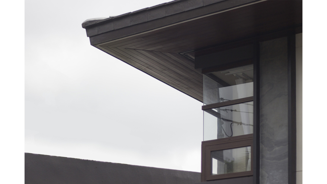 The next step was to modernize the exterior through subtle design details, thoughtful massing, and selection of finishes. Fine adjustments with size and proportion distinguish each element of the house from plant boxes, to railings, to the windows. This creates a play of volumes that draws the users’ attention and allows them to appreciate the entirety of the façade. These elements are further emphasized through materials that both complement and contrast with each other. Simple concrete finishes with accents of slate stone cladding give the structure a sense of weight and permanence, while generous wood elements add warmth and elegance. The thoroughly curated ensemble of clean lines, balanced tones, and underlined proportions refines the house and cements its presence in the modern day.